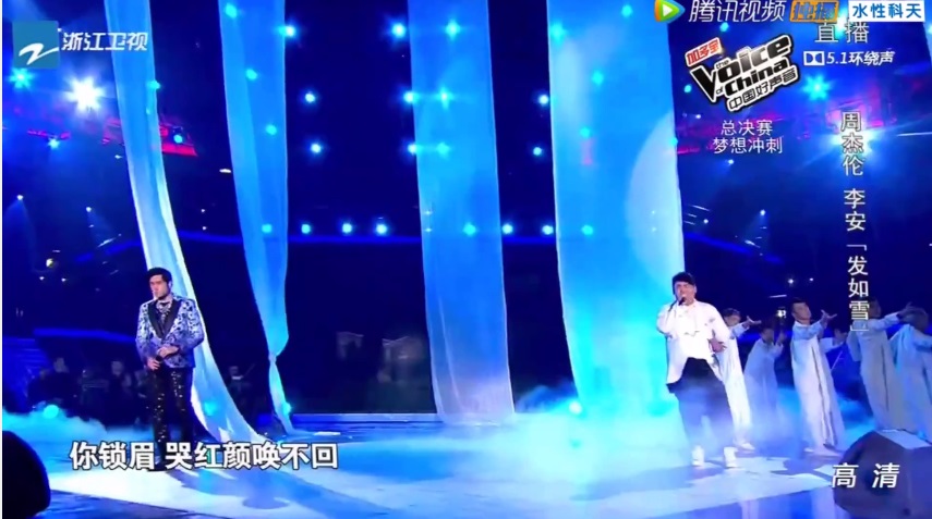 Comments: I can totally imagine this is the kind of songs Xuanyuan will sing but I’m not sure whether it’s brave or stupid to sing an English song in the finals of Voice of China. Of course, good voices go beyond language and countries but in this type of competition which is supposed to instil nationalism and hope in the people, going ‘western’ is not a very smart style. Gonna admit that he did a great job though. It almost feels like this is his personal concert.